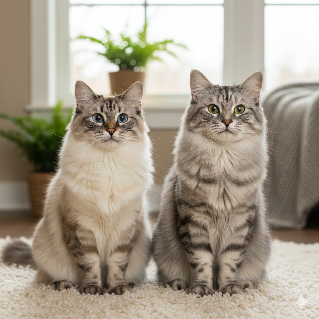 Mange lurer på hva som egentlig er forskjellen på en Sibirkatt og en Neva Masquerade. Svaret er enkelt: De er genetisk sett samme rase, men med ulik fargevariant!